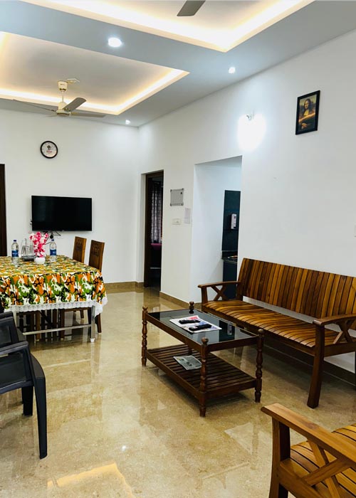 Enjoy modern luxury and serene river views in our Home Stay, SIX fully equipped 2 & 3 BHK apartments. Featuring AC, geysers, gourmet kitchens, WiFi and more. Shared living areas perfect for gatherings. Experience refined comfort.